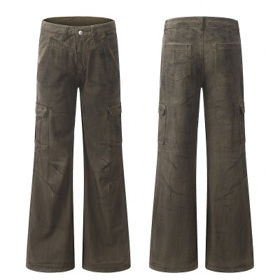 2025 Spring New American High Street Big Pocket Straight Leg Wide Leg Casual Work Pants for Men