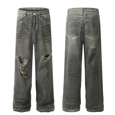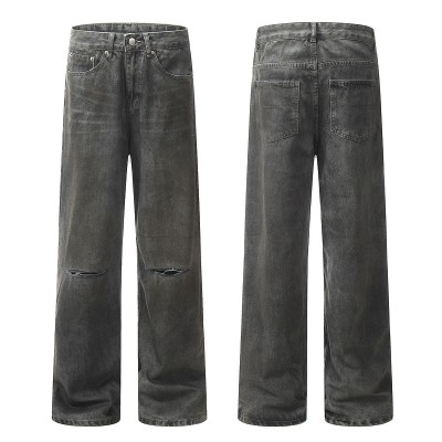 Men's and women's unlimited distressed washed hole large loose BAGGY style wide leg jeans