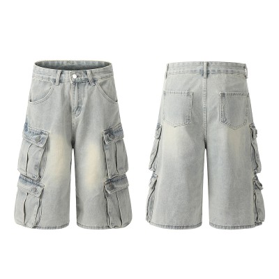 Summer men's retro trendy brand loose straight tube versatile seven quarter jeans